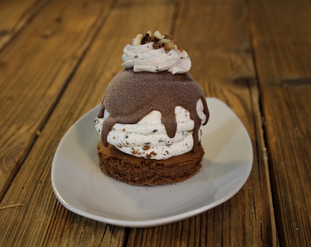 Výborný dezert z kakaového korpusu a lahodného straciatella krému. Minimální počet pro objednání tohoto dezertu je 6 kusů.Alergeny: A1/1, A3, A6, A7 Může obsahovat stopy A8